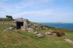 As might be expected, the largest island of St Mary’s has the best selection of sites, though largest is relative of course – at a little over 6km2 St Mary’s in spite of its road network is still somewhere for strolling between stops. There are some inland sites, but a trip around the coast reveals most of the finest: not far from the air- and heliport near Old Town is the hill-fort called Giant’s Castle; making along the coast north-east brings you shortly to the impressive burial chamber at Porth Hellick Down ; continue around the coast anti-clockwise and you come to one of the major archaeological sites, Innisidgen , one of the chamber tombs restored by English Heritage.
